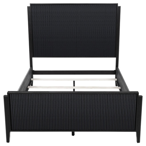 Inspired by trending interior design aesthetics increasingly mixing modern and traditional elements to invent its own style, this five-piece wood dining set stands out to impress. Crisp, clean style and a contrasting color and finish palette begin the dramatic look of a set suitable for both modern and transitional settings important to your everyday living. Distressed black finish wood construction on all pieces gains attention to a minimalist table design with straight, flat leg sections under a sleek top with linear silhouetting and a dimensional top chamfer curving along its edges. Chairs offer a clean silhouette with black finish wood framing, tapered legs, and ornate notched tops with linear carvings thrown in for extra dimension. Soft ivory fabric upholstery is intriguingly placed on both sides of top cushions and over a padded seat. Key Features: • Modern or transitional spaces embrace a five-piece dining set with a simple motif and contrasting finishes/colors • Contemporary style weaves together linear silhouetting in a table with slight top chamfer curving • Black finish wood construction with wire brush distressing is bold, versatile, and textural • A convenient removable tabletop leaf extends length by 18 inches to accommodate a larger party • Chair design features a bordered look with contrasting black wood finish and soft ivory upholstery • Crisp geometric chair top emblems add a textural look with vertical grooves and notched edges