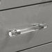 Create a room made for a princess with this bedroom set from the Maddie Collection. The curved headboard is padded and upholstered in a horizontally-tufted fabric, emphasizing the pearl white finish. The dresser and chest feature acrylic legs, crystal accents, and a beveled mirror with a LED light creating a glamorous aesthetic. Give into your glitzy side with this opulent set.