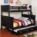 This item takes a slightly more traditional approach to the bunk bed genre. The panel styled head and foot boards have a crowned top and vertical planking that carries a sophisticated air. An attached ladder and sturdy guard railing adds safety. The matching trundle features a drawer face edifice so you can conceal another mattress under the lower bed platform. This collection is all about space saving design and a touch of country charm that both you and your kids will love. Product Dimensions: 42"W x 74.75"L x 11.75"H