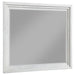 Distinctive hardware and layered trim work create a refined but dimensional effect for a five-piece modern bedroom set. In distressed white with wood grain texturing, it's a complete set that includes an upholstered bed with a padded headboard, two-drawer nightstand, five-drawer chest, and six-drawer dresser and mirror. It delivers ample storage and easy organization in a cohesive bedroom ensemble. The bed features a contemporary, open silhouette with a tall headboard and low footboard. Add colorful linens for a fresh look or stick with crisp white for a soothing monochromatic effect.