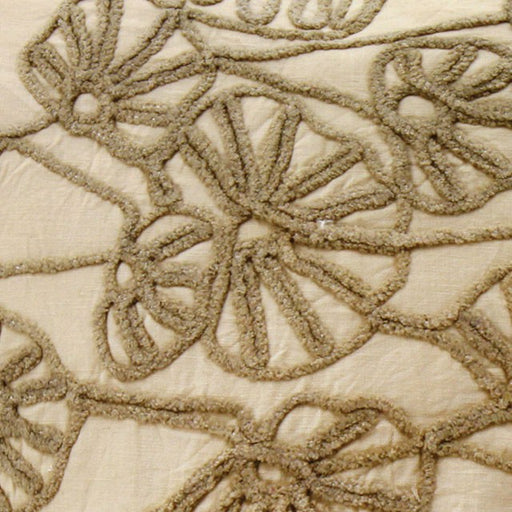 FOA WestThis square pillow features intricate floral patterns in subdued shades of green and brown on an ivory backdrop.