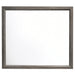 The modern appeal of all things gray is taken to unique heights in this five-piece bedroom set for the master or second bedroom. The entire set is finished in a bold gray oak with understated black rectangular accents and frames. The high headboard and low footboard of the majestic queen bed have rectangular panels outlined in timeless black. The well-appointed chest, nightstand, and dresser have roomy drawers with burnished silvery handles. The rectangular dresser mirror has clean, crisp lines to complete the look of this resplendent modern bedroom set.